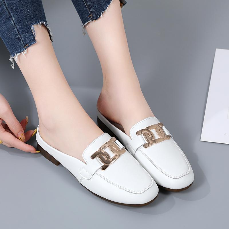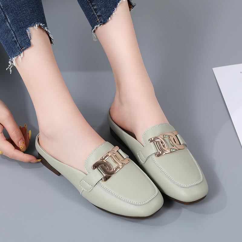 Новые женские полушлепанцы Baotou, женские сандалии Мюли на толстом каблуке с квадратным носком для улицы, женские плоские модные винтажные британские кожаные