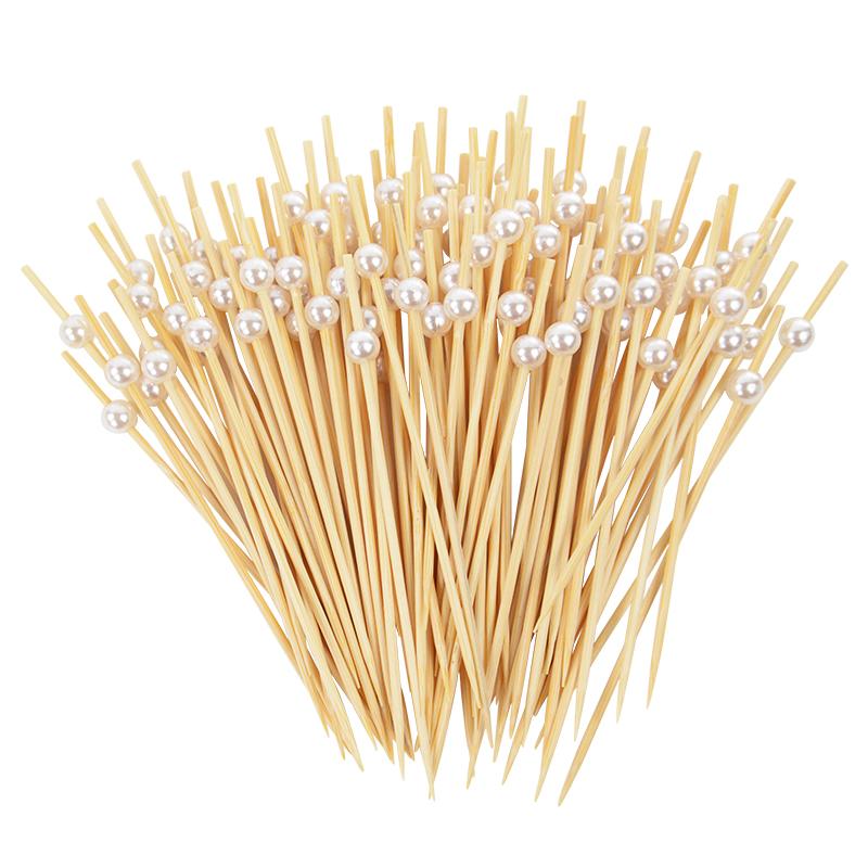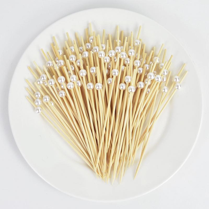 100pcs Wedding Party Pearl Disposable Skewers Food Fruit Picks Bamboo Cocktail Buffet Cake Toothpick Wedding Birthday Supplies