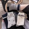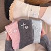 Женские осенне-зимние утолщенные плюшевые теплые носки средней длины из шерсти в полоску с вышивкой «Любовь» и бантом