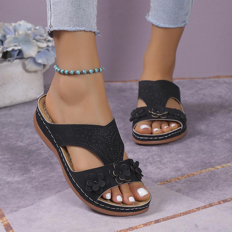 Летние женские тапочки, большие размеры, женская обувь, римские сандалии в стиле ретро, женские повседневные сандалии на танкетке с цветочным принтом, тапочки на платформе