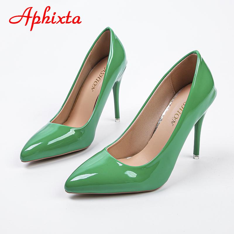 Aphixta 2025 Зеленые Супер Высокие 3,94 дюйма Туфли-лодочки на шпильке Женские Туфли Тонкий каблук Острый носок Цветная лакированная кожа Офисная обувь — купить товар онлайн с бесплатной доставкой по всему миру!