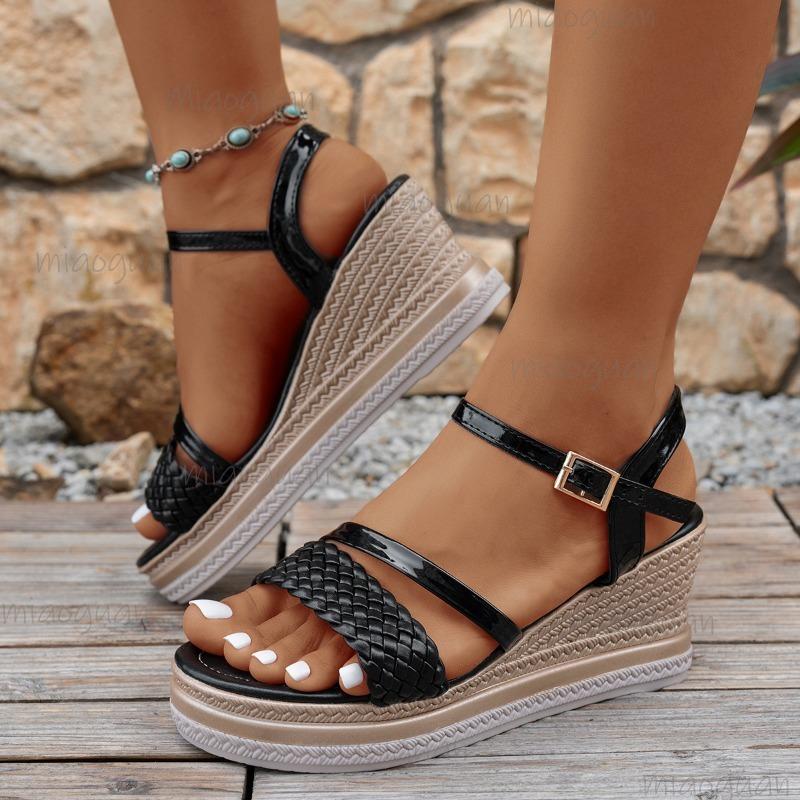 Плетеные сандалии-клинья для женщин Легкие сандалии на платформе с ремешком и пряжкой Женские летние сандалии с толстой подошвой Пляжные сандалии Mujer