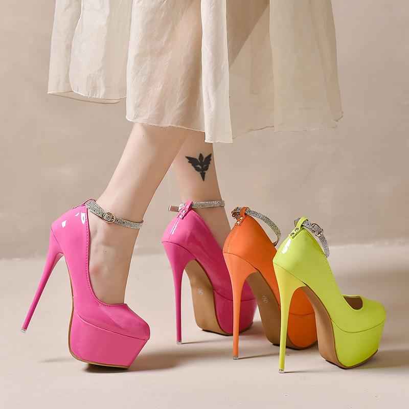 2024 Женские вечерние диско-танцевальные туфли на платформе 5,5 см, с пряжками, супервысокие тонкие шпильки, для платья, для вечеринки, красные, большие размеры 49 50