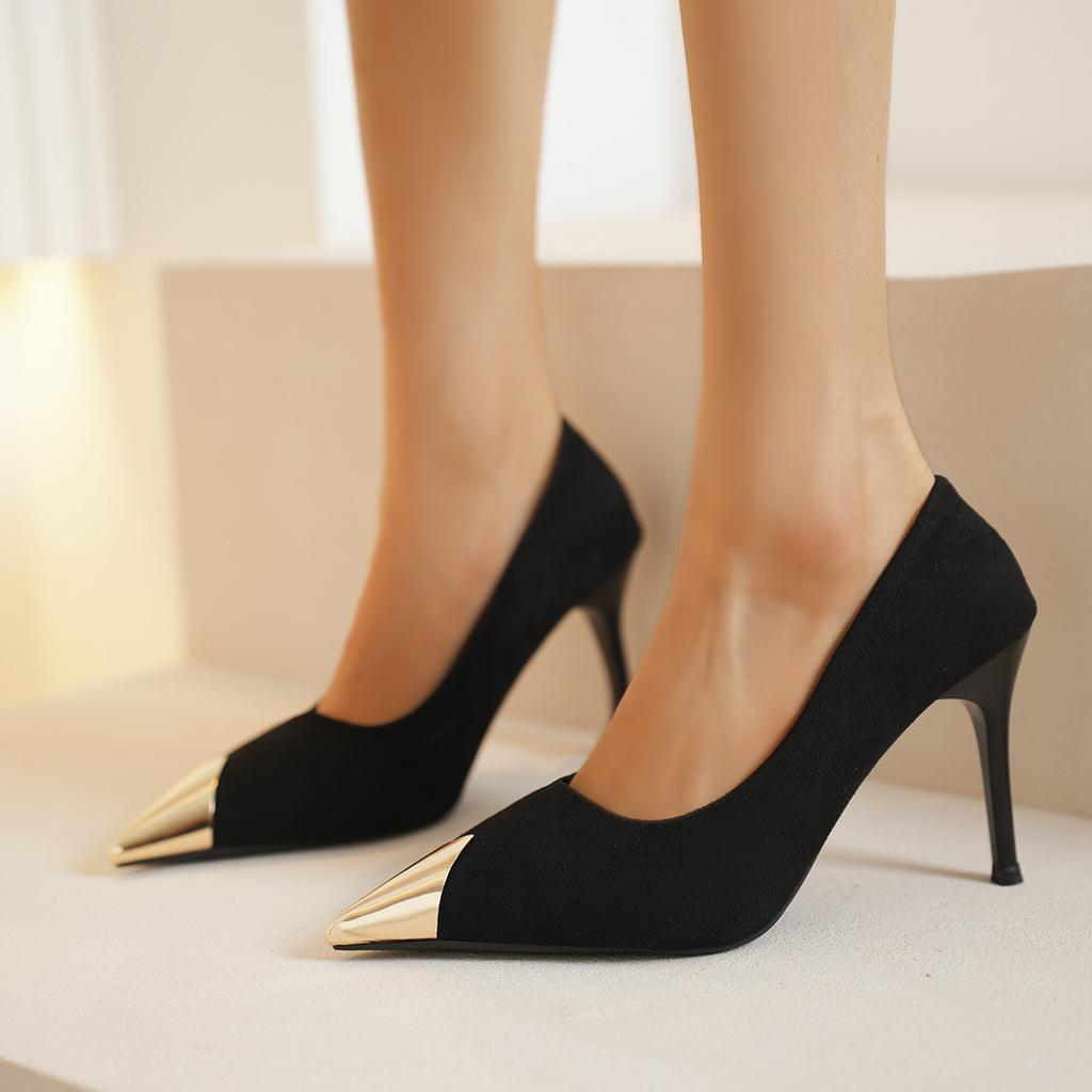 Новые Сексуальные Женские Туфли-Лодочки на Высоком Каблуке Стилет Гусиная Лапка Цветовая Блокировка Металлический Острый Носок Свадебные Женские Черные Каблуки Вечерние Туфли