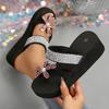 Роскошные сандалии с перемычкой для пальца с цветком из страз, женские легкие клипсы с кристаллами, шлепанцы на танкетке, женские больших размеров 36-42, платформа, слайды Mujer