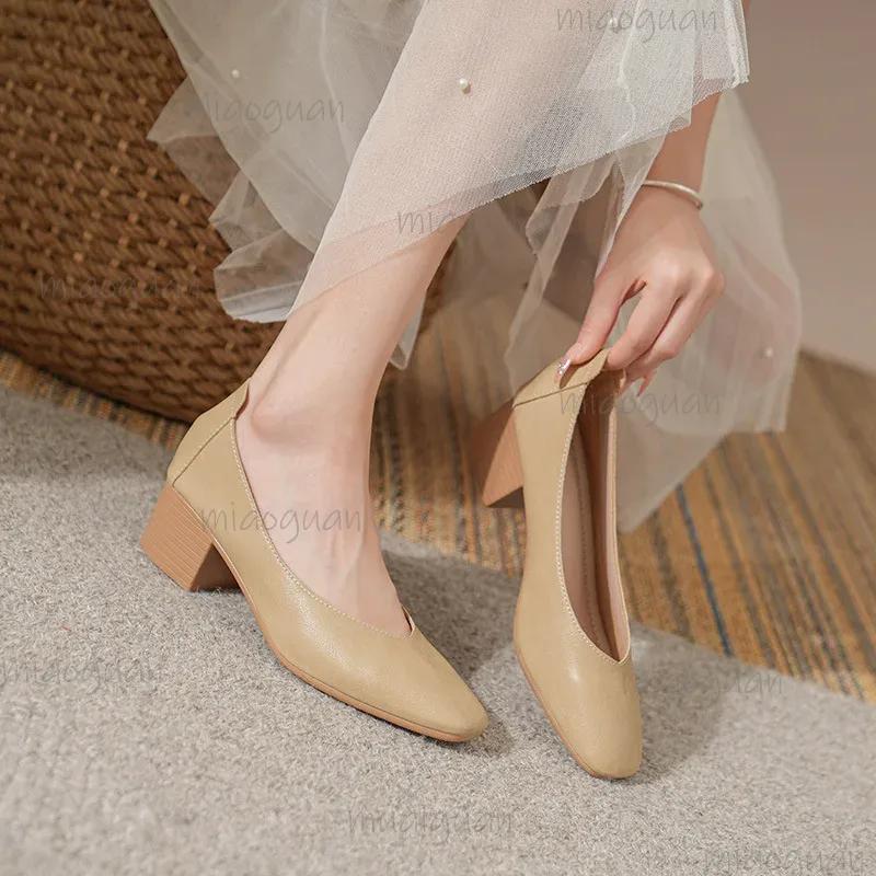 Кожаные женские рабочие туфли-лодочки на толстом каблуке с круглым носком, на мягкой подошве, удобные, нескользящие лоферы, летние Chaussures Femme