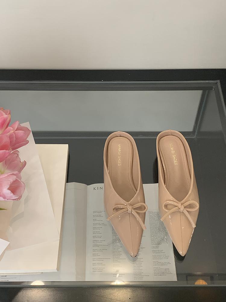 Женская обувь с острым носком Новинка 2025 Туфли-лодочки Женские Туфли на низком каблуке Мюли Бант-бабочка Туфли на невысоком каблуке Слайды