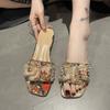Женская обувь Тапочки для женщин Новый стиль Роскошные Жемчужные Стразы Массивный каблук Тапочки Летняя Женская обувь Босоножки с бантом-бабочкой