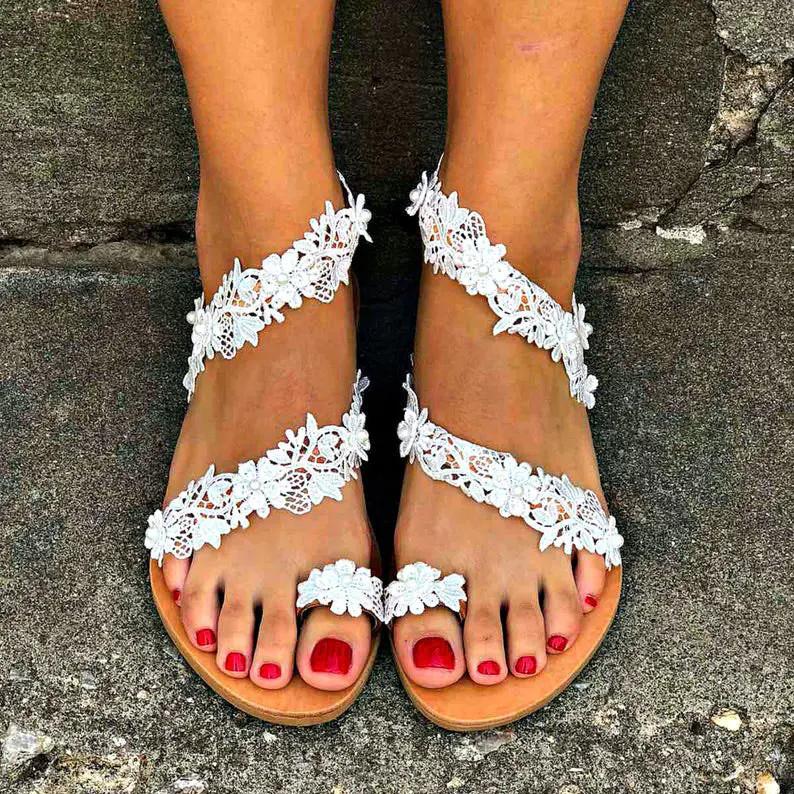 Летние сандалии для женщин Легкие дышащие слипоны Женские свадебные вечерние плоские сандалии Богемные цветочные пляжные туфли