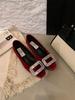 IPPEUM Балетки Туфли со стразами для женщин 2025 Новые с квадратным носком Красные бархатные туфли-балетки Женские