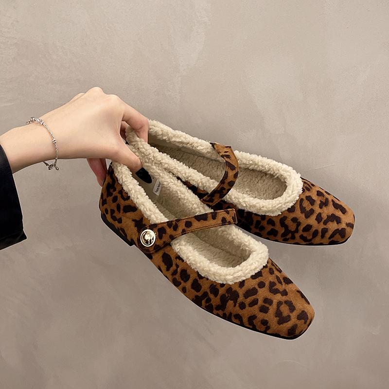 Aphixta Леопардовые Лоферы Туфли на Квадратном Каблуке Меховые Теплые Женские Туфли с Квадратным Носком Повседневные Женские Туфли Классические Осенне-Зимние Мэри Джейнс