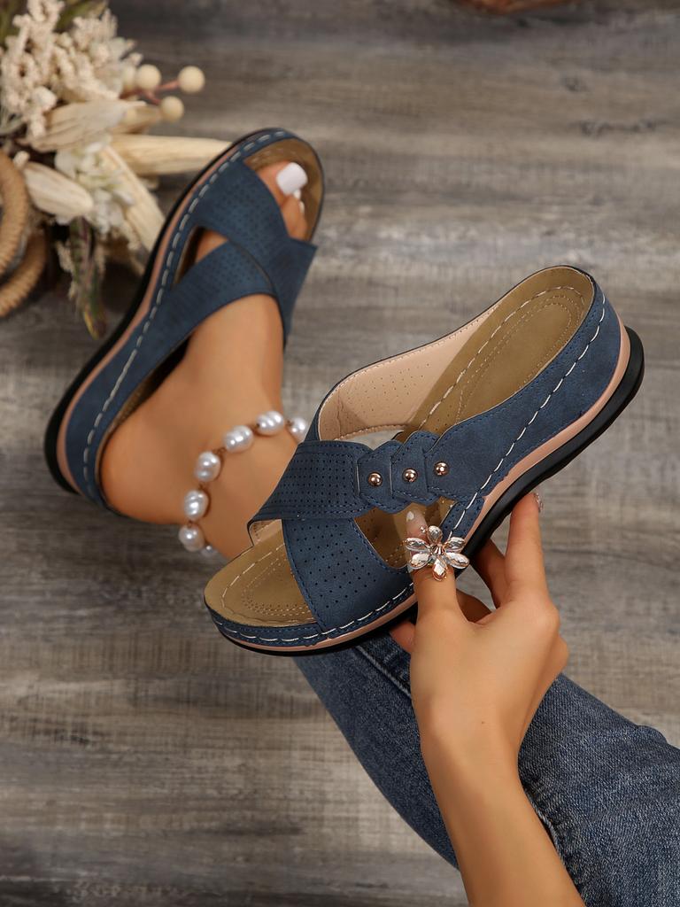 Тапочки Женские Кожаные Туфли Клинья Открытый Носок Повседневные Противоскользящие Шлепанцы Уличные Пляжные Сандалии в Форме Листа 43 Размера