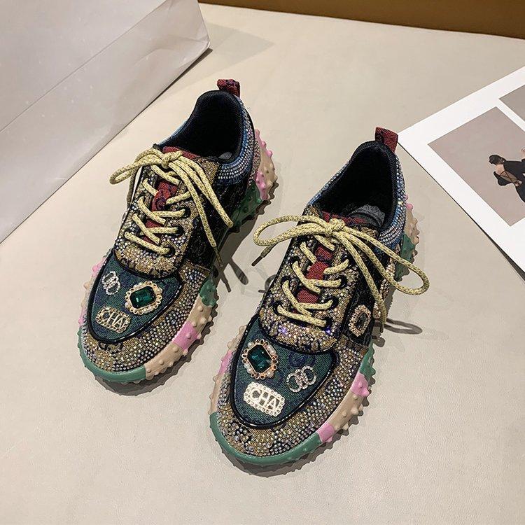 Европейская станция Низкие кроссовки со стразами Дуриановые туфли для женщин 2024 Новые туфли на плоской подошве с бриллиантами для женщин Повседневная спортивная обувь