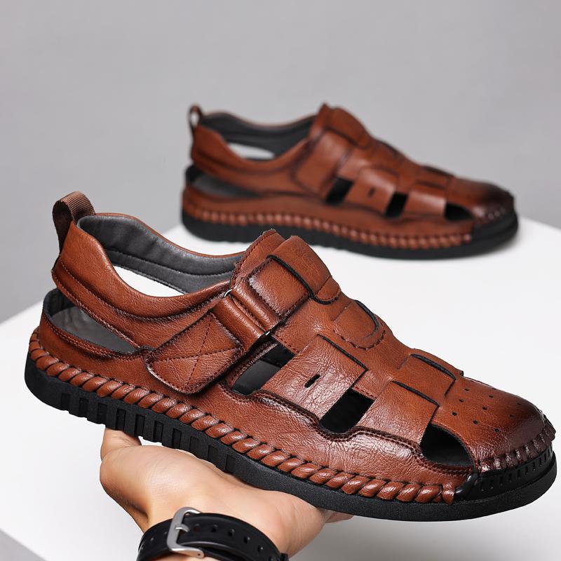 Летние высококачественные мужские сандалии ручной работы с перфорацией, дышащие, для отдыха, с полыми деталями, для улицы, удобные, мягкие, нескользящие лоферы
