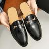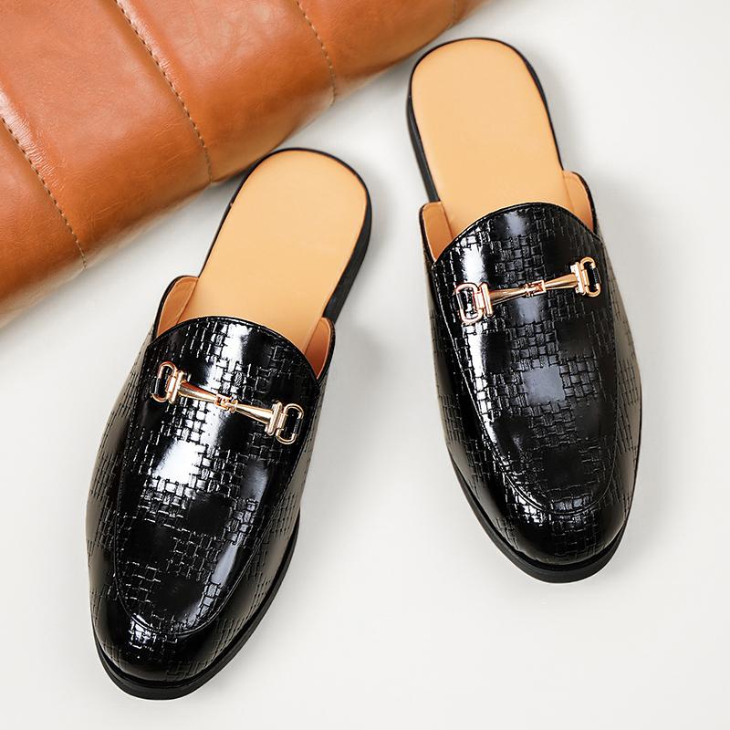 New Men Metal Button Pu Leather Half Slippers Shoes Male Casual Mules Moccasins Breathable Loafers Zapatos Hombre