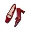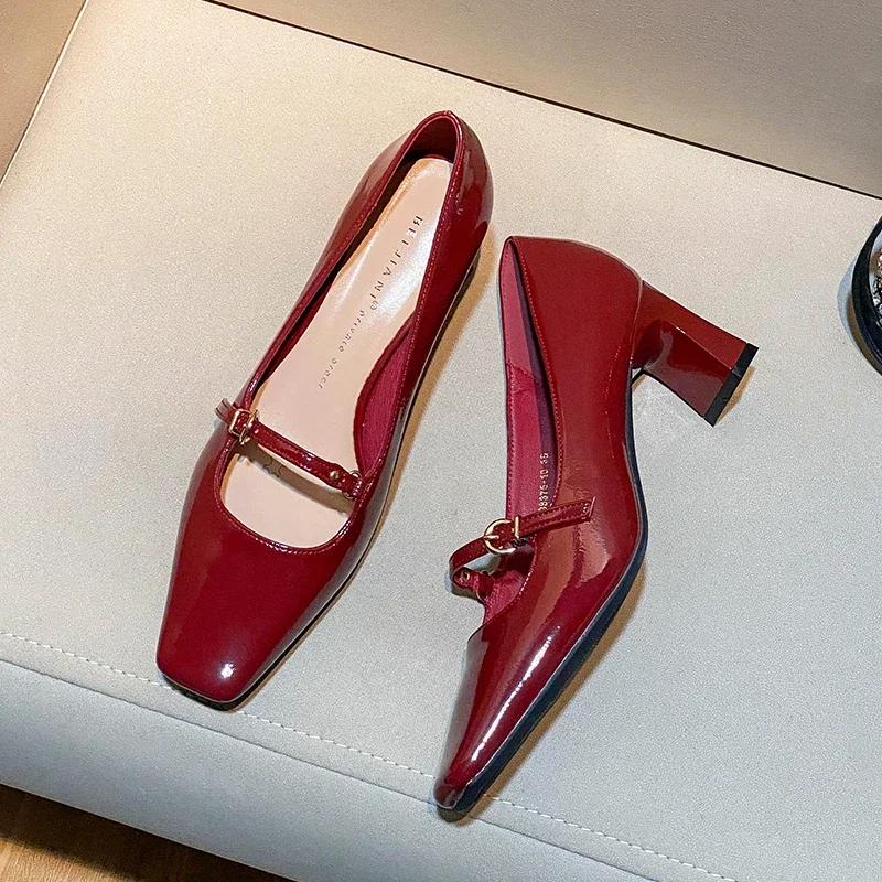 2024 Женская обувь Мэри Джейн Женские туфли-лодочки на высоком каблуке Женские туфли с квадратным носком на высоком толстом каблуке с ремешком на пряжке Женские