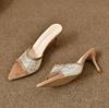Модные Универсальные Шлепанцы на Высоком Каблуке с Острым Носком, Украшенные Стразами, Сандалии с Цельным Ремнем, Повседневная Элегантная Женская Обувь