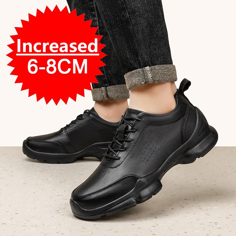 Men's Genuine Casual Leather Oxfords 6cm/8cm Hidden Elevator Height Increase Soft Sole Business Formal Comfortable Lace-Up Shoes