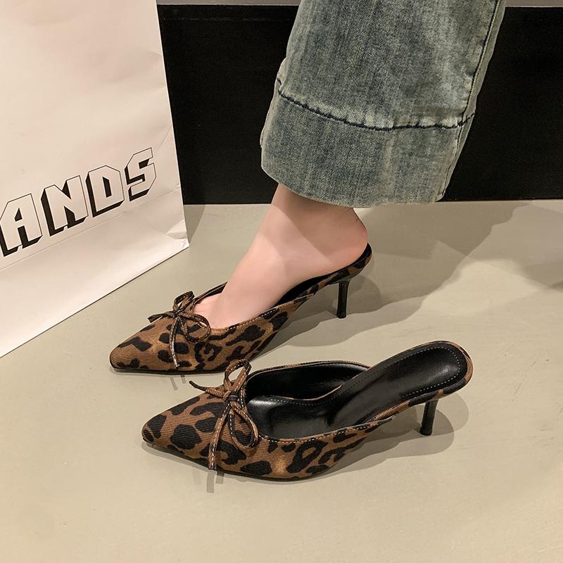 Новые женские туфли-мюли с леопардовым принтом на высоком каблуке, с острым носком, на тонком низком каблуке, сандалии, женские мюли, обувь Zapatos Mujer — купить товар онлайн с бесплатной доставкой по всему миру!