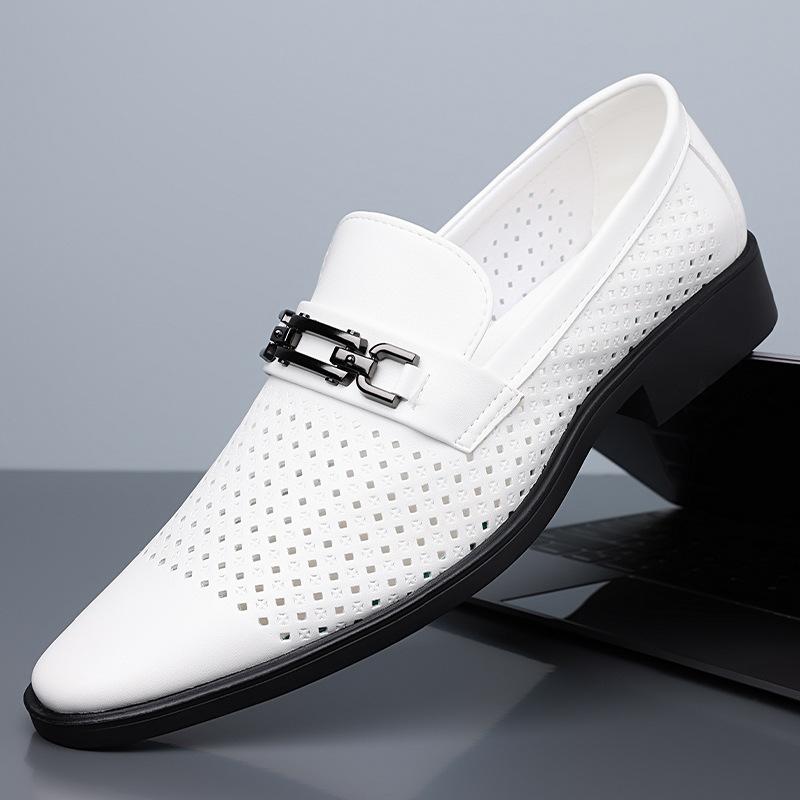 Новые кожаные мужские сандалии Кожаная обувь Летние кожаные С отверстиями Дышащие Сквозные Белые Деловые Повседневные Туфли