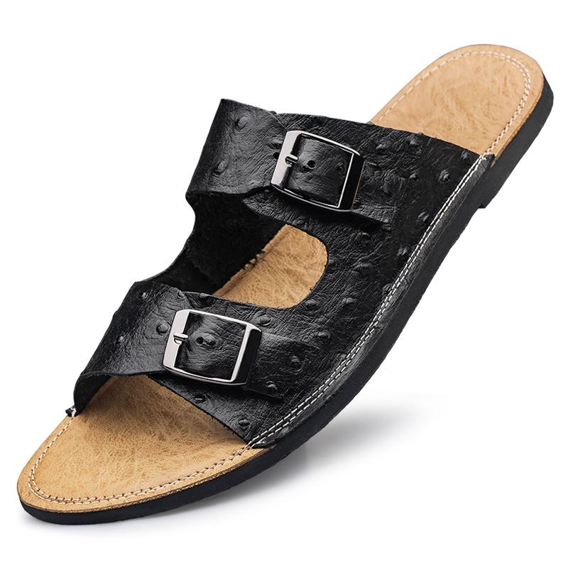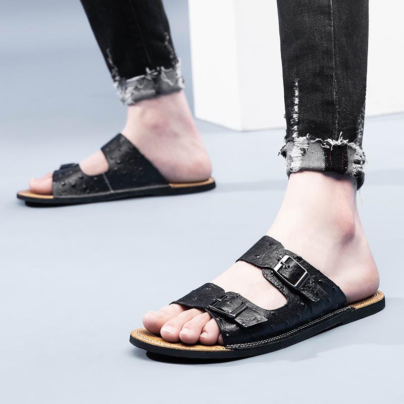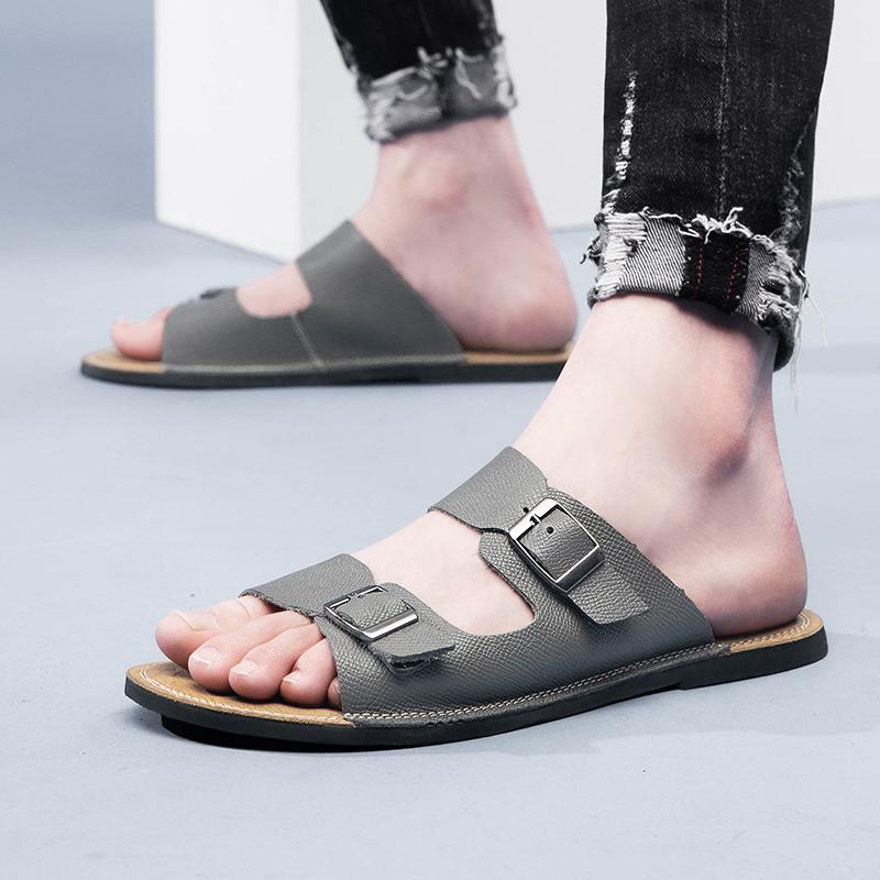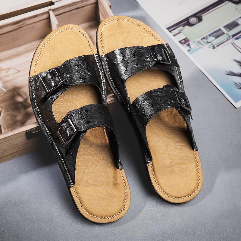 2025 Men Leather Beach Sandals and Slippers Men Beach Cross Cork Slippers Summer Solid Color Non-slip Leather Slide Shoe