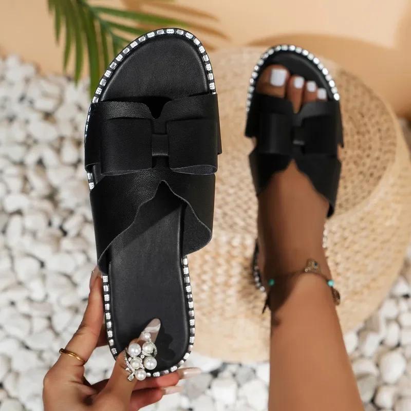 Женские сандалии 2024 Новые с открытым носком Летние Римские Однотонные Мягкая подошва Уличные Повседневные Плоская обувь Удобные Большие Женские Шлепанцы