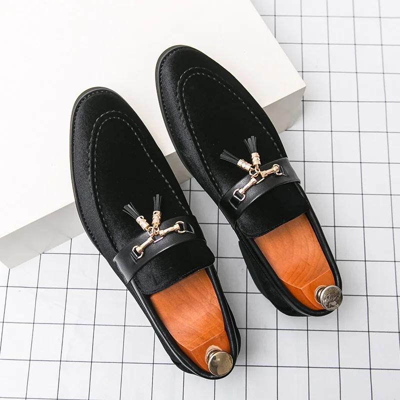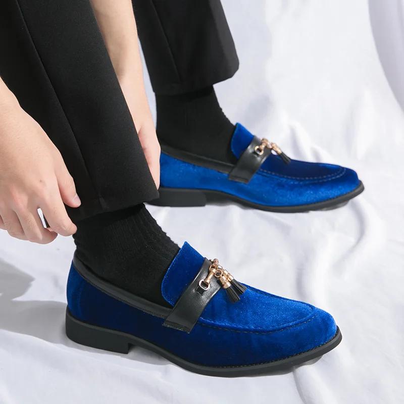 Мужские синие лоферы с кисточками, замшевые туфли на плоской подошве, слипоны, легкие, удобные, для вождения, повседневная обувь, ленивые лоферы Mo-358