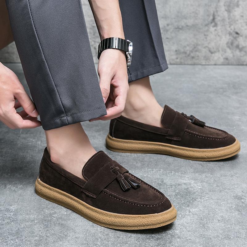 Модная новая мужская обувь для ходьбы, слипоны, мягкие мокасины ручной работы, мужские лоферы для улицы, повседневная кожаная обувь, модные мужские туфли-лодочки