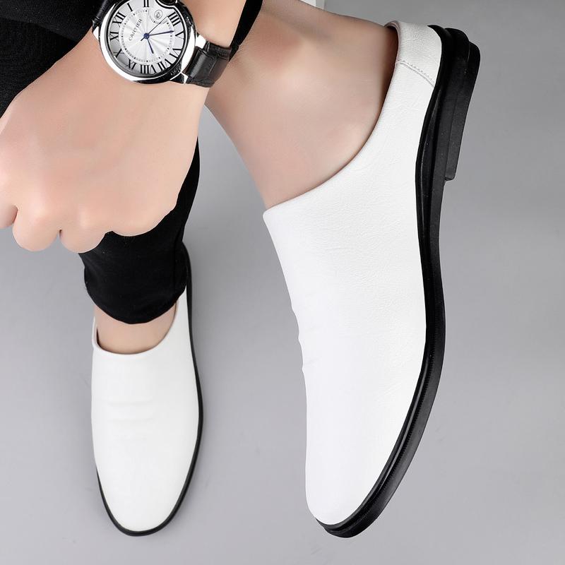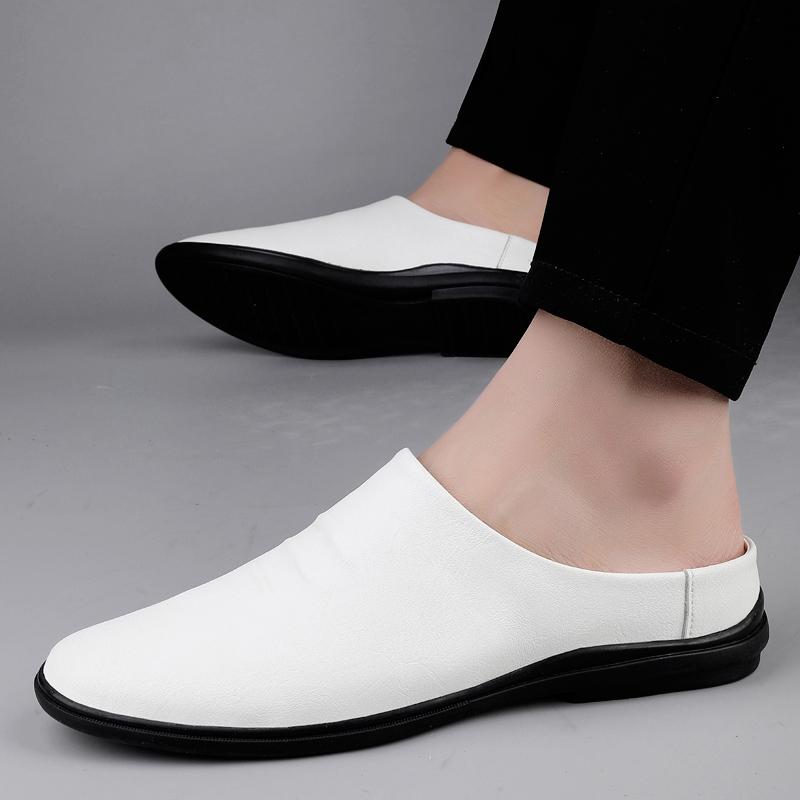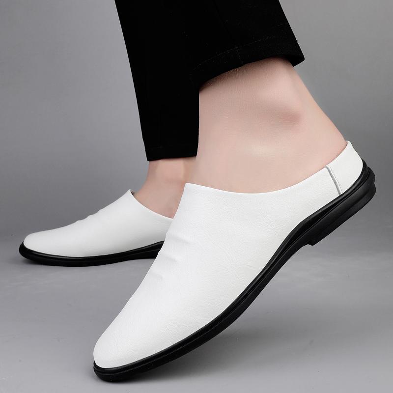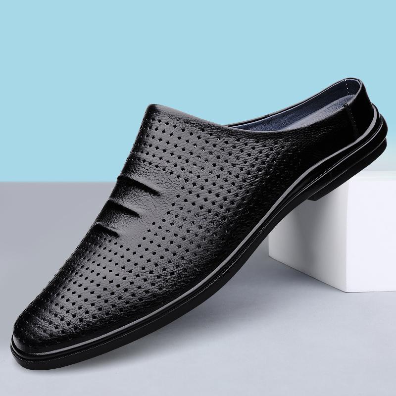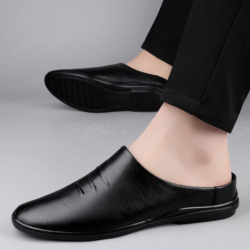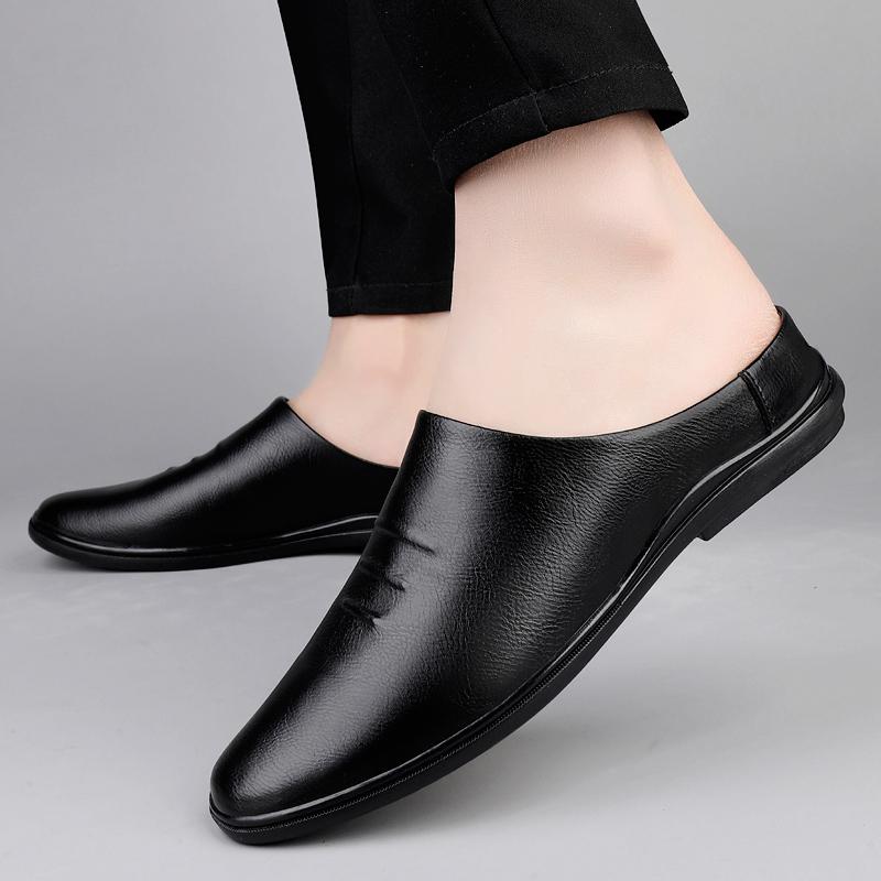 Модные открытые шлепанцы на низком каблуке, мужские слипоны для ходьбы, кожаные мужские удобные мюли, обувь 2025, мужские повседневные дышащие удобные сандалии