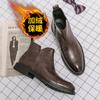 Модные зимние теплые мужские повседневные ботинки челси из хлопка, кожаные ботильоны 2024 года, лаконичные короткие ботинки, классические деловые ботинки без застежек