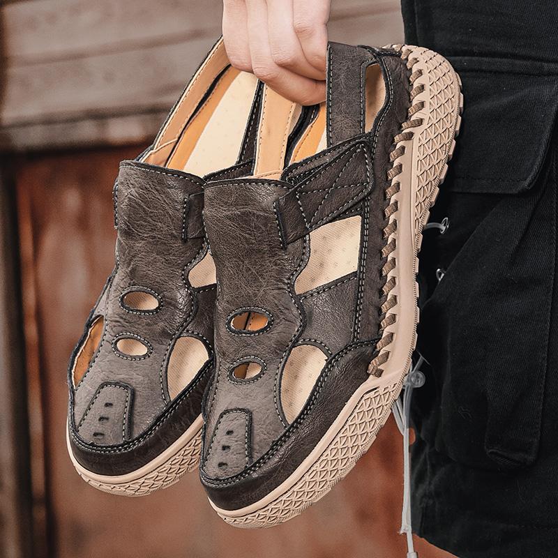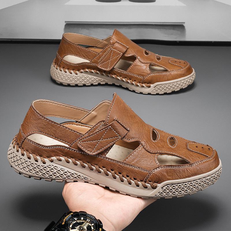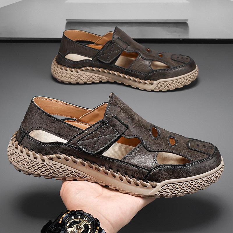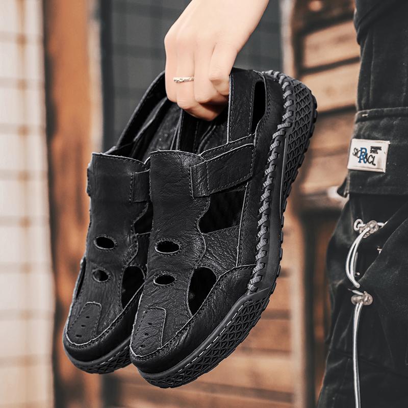Модная дышащая летняя обувь, удобная кожаная мужская повседневная обувь, уличные мужские сандалии ручной работы с перфорацией, пляжные балетки быстросохнущие, римская обувь