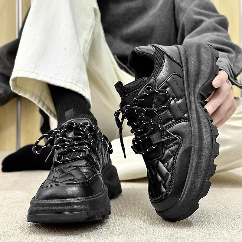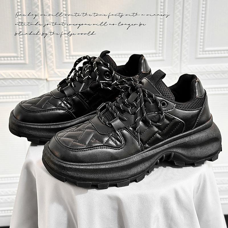 Мода 2025 Весна Новые Кожаные Туфли Мужские Гонконгский Стиль Низкий Верх Модный Тренд Повседневная Обувь Удобные Универсальные Кроссовки на Платформе