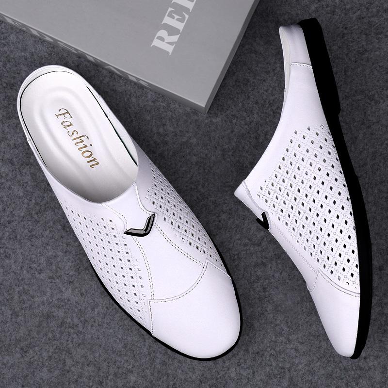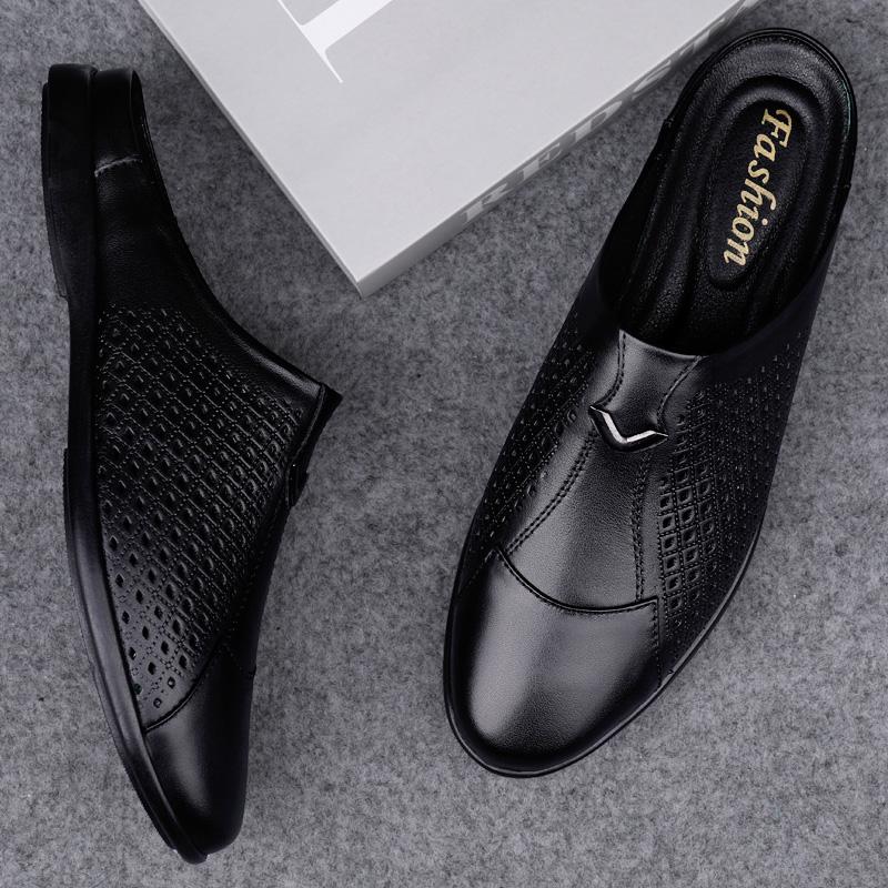 Мода Мода Мужские Полуботинки на Мягкой Подошве Уличные Мужские Туфли Мюли Летние Шлепанцы Крутая Повседневная Обувь Натуральная Кожа Полусандалии