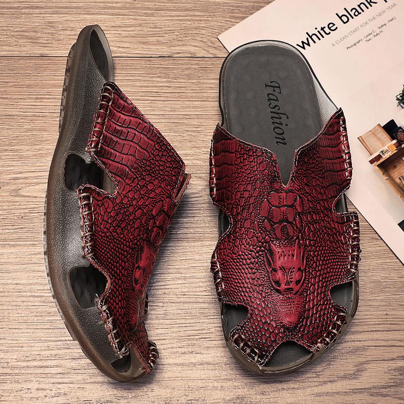 Модные летние сандалии для улицы, мужские повседневные кожаные шлепанцы, классические полушлепанцы, пляжные резиновые шлепанцы, быстросохнущие, мужские, для воды, трекинговые, плоские