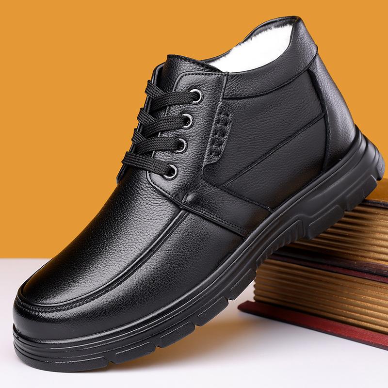 Мода 2025 Зимние Высокие Теплые Хлопковые Ботинки для Мужчин Модные Повседневные Черные Ботильоны на Шнуровке Мужские Новые Дизайнерские Деловые Кожаные Ботинки Мужские