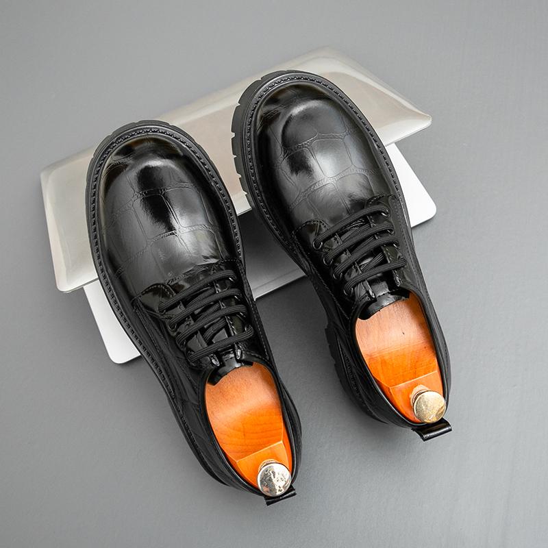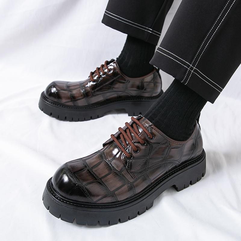 Мода Модный бренд Мужские туфли дерби из крокодиловой кожи, удобная толстая подошва, весна, мужские, ретро, на шнуровке, деловые, повседневные, кожаные туфли