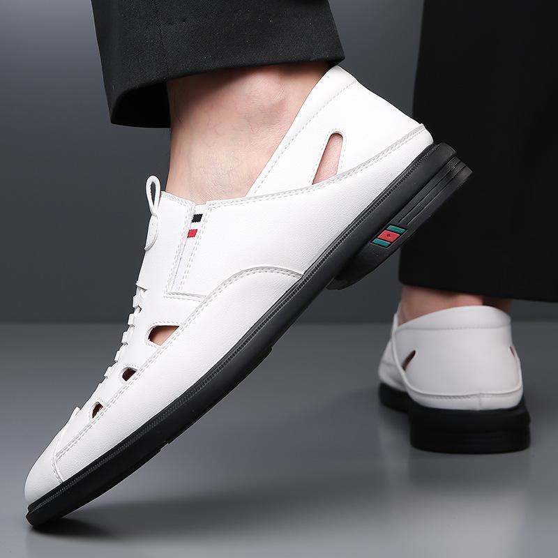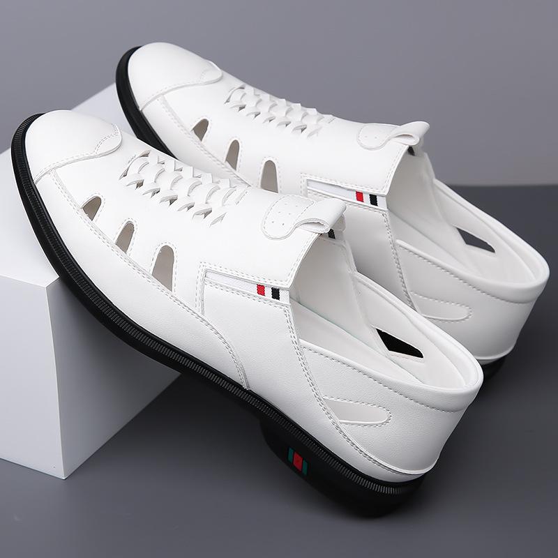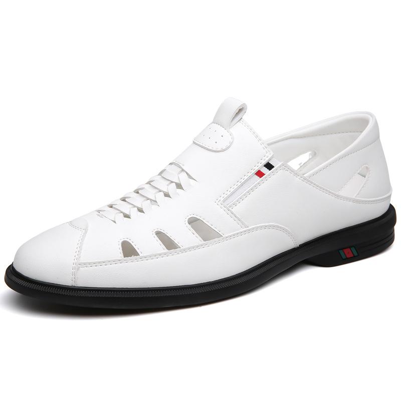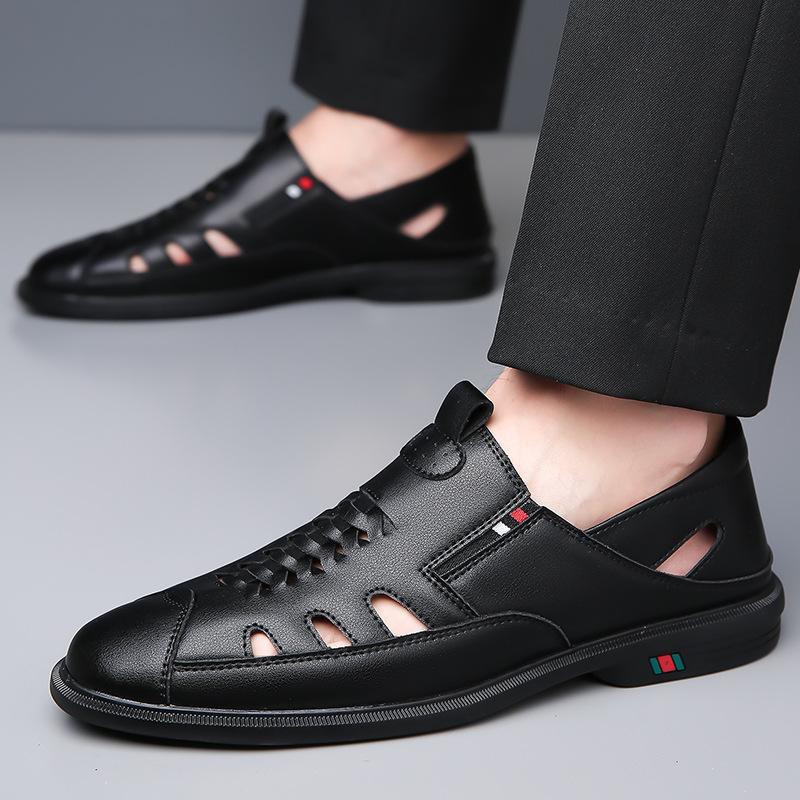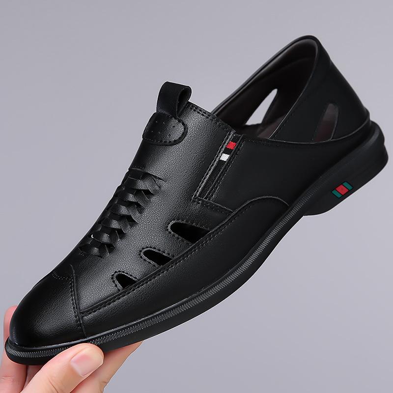 Модные весенне-летние полые повседневные сандалии дышащие двухцелевые мужские туфли однотонные модные туфли из кожи на мягкой подошве мужские