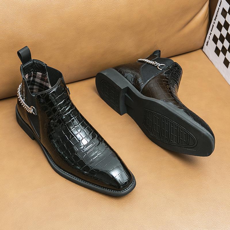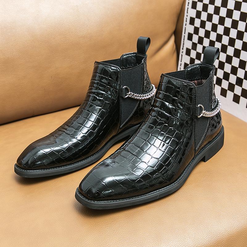 Модная зимняя новая мужская обувь на щиколотке с острым носком, с металлическими цепочками и узором под аллигатора, мужская повседневная роскошная обувь на высокой платформе