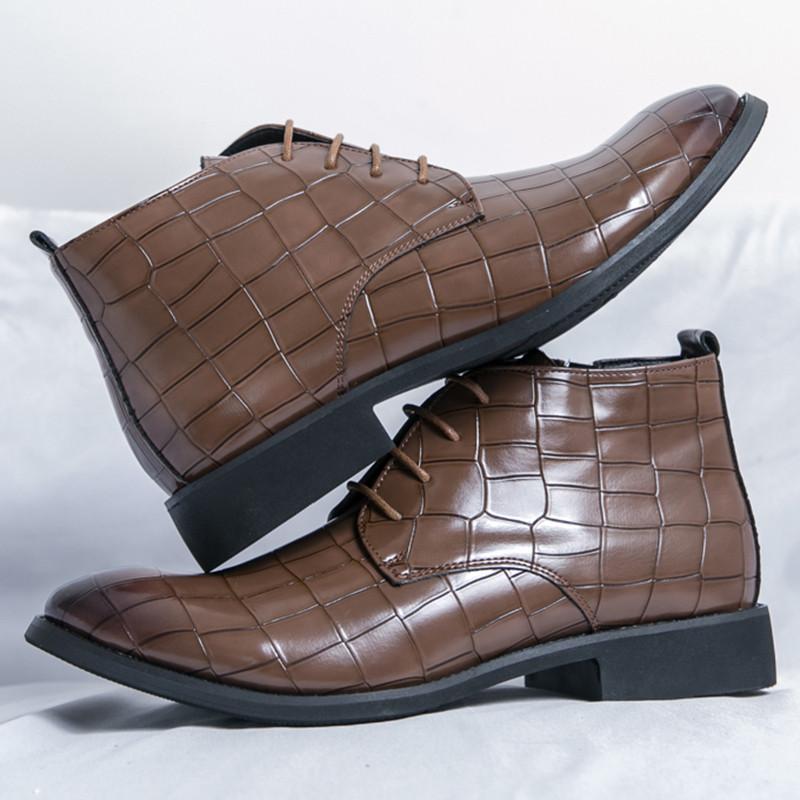 Мода Зимняя Мода Новый Дизайнер Мужские Остроносые На Шнуровке Повседневные Ботинки Челси Свадебное Платье Выпускной Вечер Обувь Высокие Ботильоны