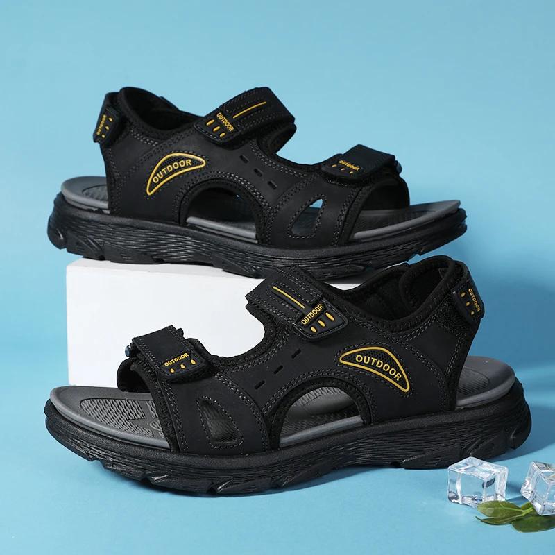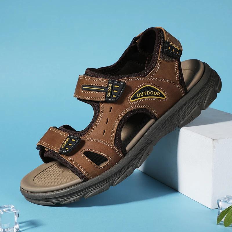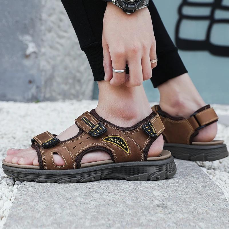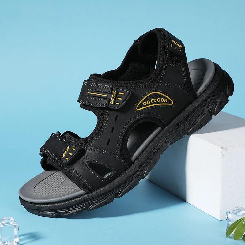 Модные мужские сандалии Летние сандалии из натуральной кожи Пляжные сандалии Классическая мужская повседневная обувь Шлепанцы для ходьбы по воде Уличные кроссовки Zapatillas Мужские