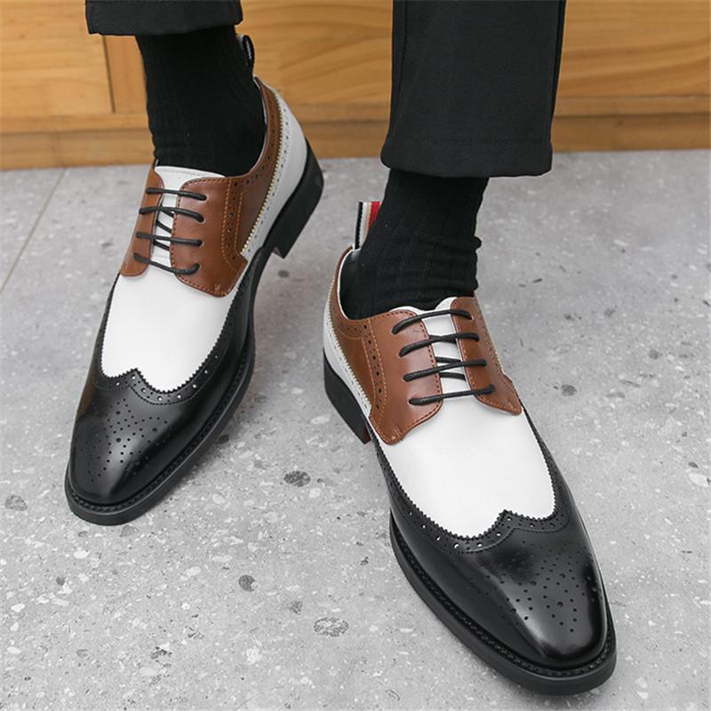 Модный тренд Новый дизайнер Мужские Остроносые Черно-белые Лоскутные Свадебные Броги Обувь Мужская Повседневная Формальная Одежда Обувь Zapatos Hombre