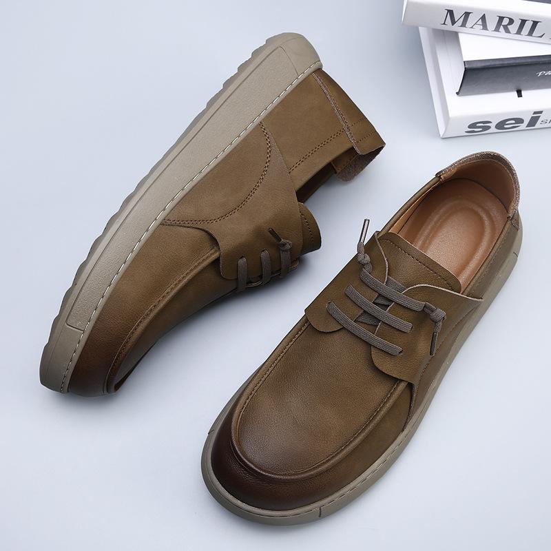Мода 2025 Осень Новые Лоферы с Низким Верхом для Мужчин Однотонные Кружева Мода Повседневная Кожаная Обувь Мужская Ретро Мягкая Подошва Дизайнерская Обувь Мужская