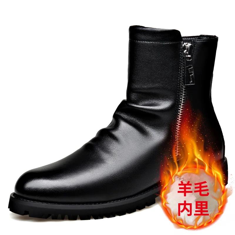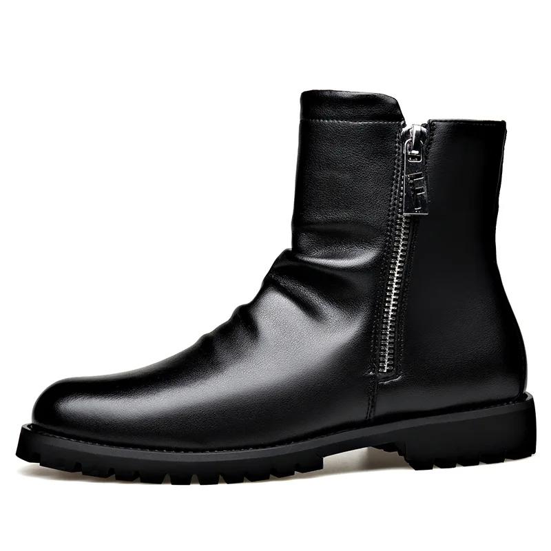 Модные осенне-зимние черные кожаные ботильоны для мужчин, модные повседневные новые дизайнерские шерстяные теплые хлопковые туфли, мужские ботинки большого размера на платформе