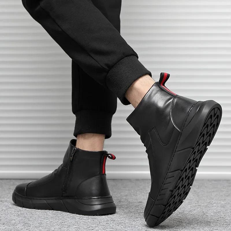 Модные мужские ботинки челси, водонепроницаемые ботильоны без застежек, черные мужские модные ботинки в стиле ретро, обувь для мотоциклистов, большие размеры 2024