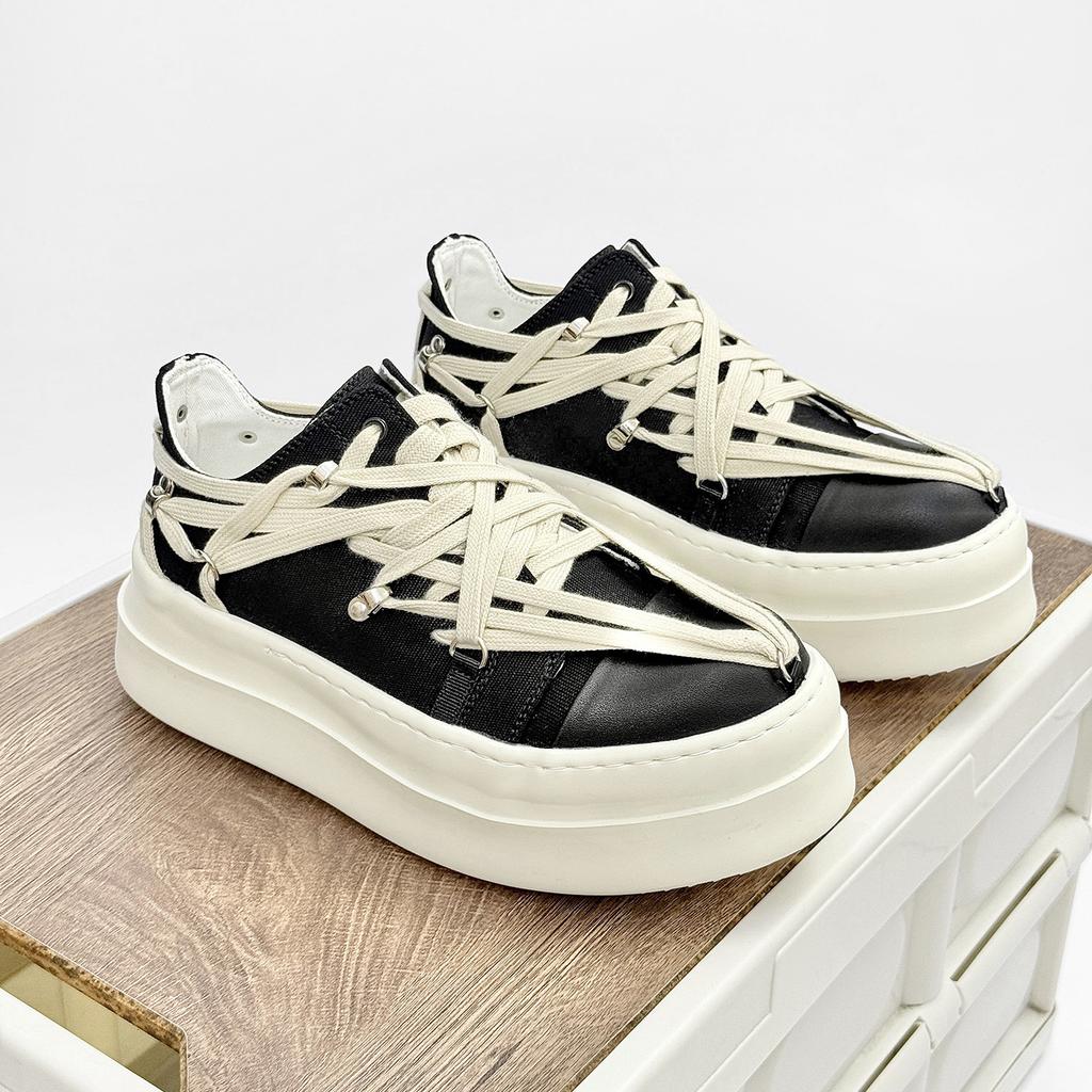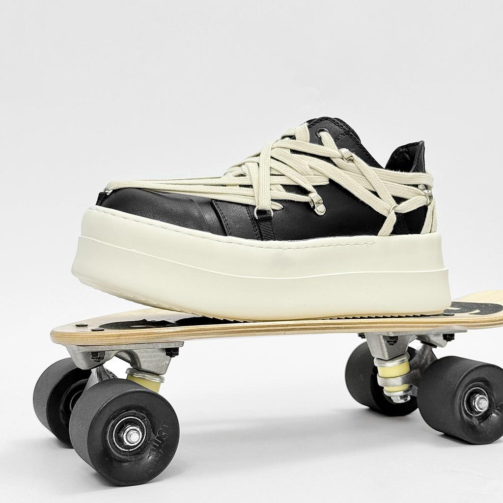 Мода Мода Пара Обувь Кожа Низкий верх Платформа Женская Мужская Обувь Черный Белый Шнуровка Высокое качество Повседневная Толстая подошва Обувь для скейтборда