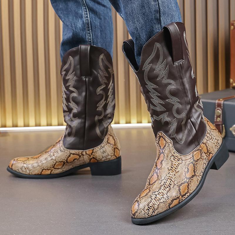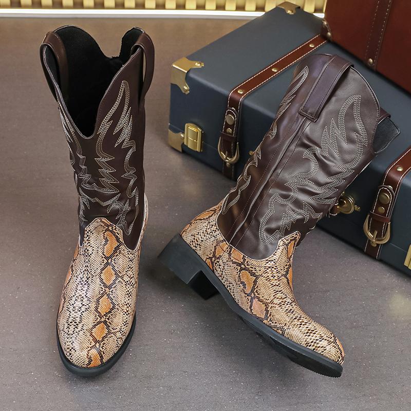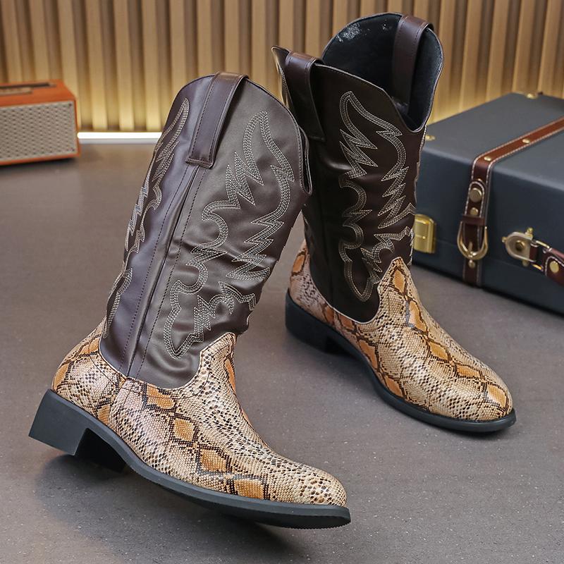 Мода Новая Зимняя Мода Высокие Топы Змеиная Кожа Микс Ковбойские Сапоги в Западном Стиле Для Мужской Повседневной Роскоши Брендовая Обувь Высокие Кроссовки Zapatos Hombre