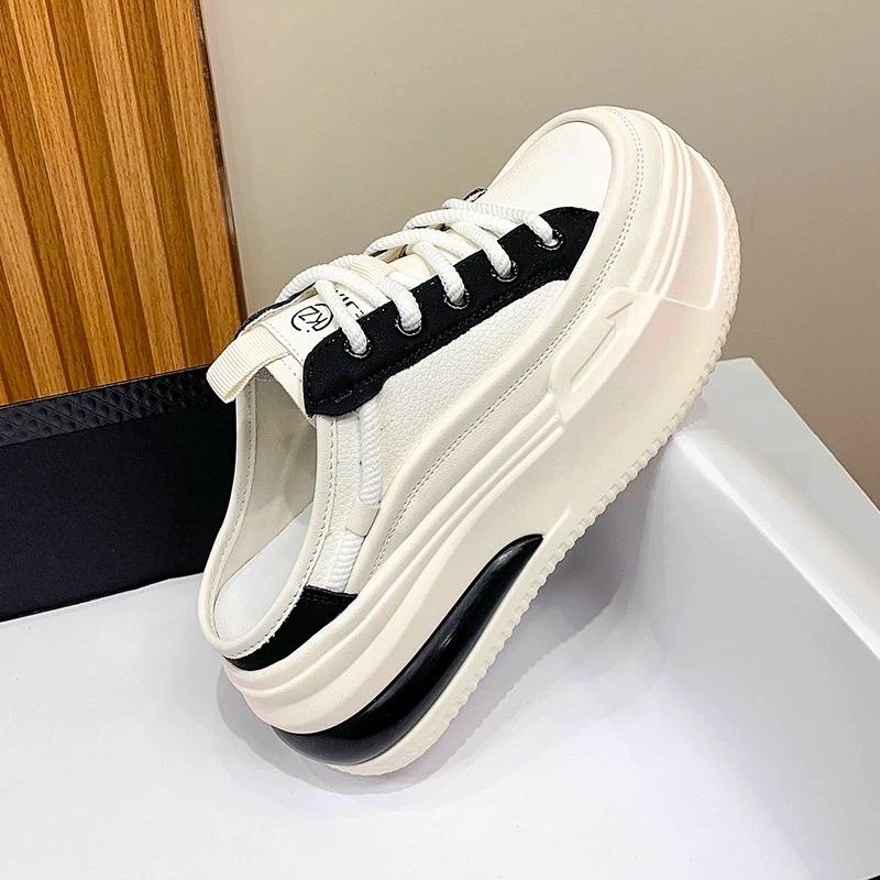 Модные женские кожаные полутапочки BaoTou весна-лето для отдыха на открытом воздухе женские туфли на толстой подошве