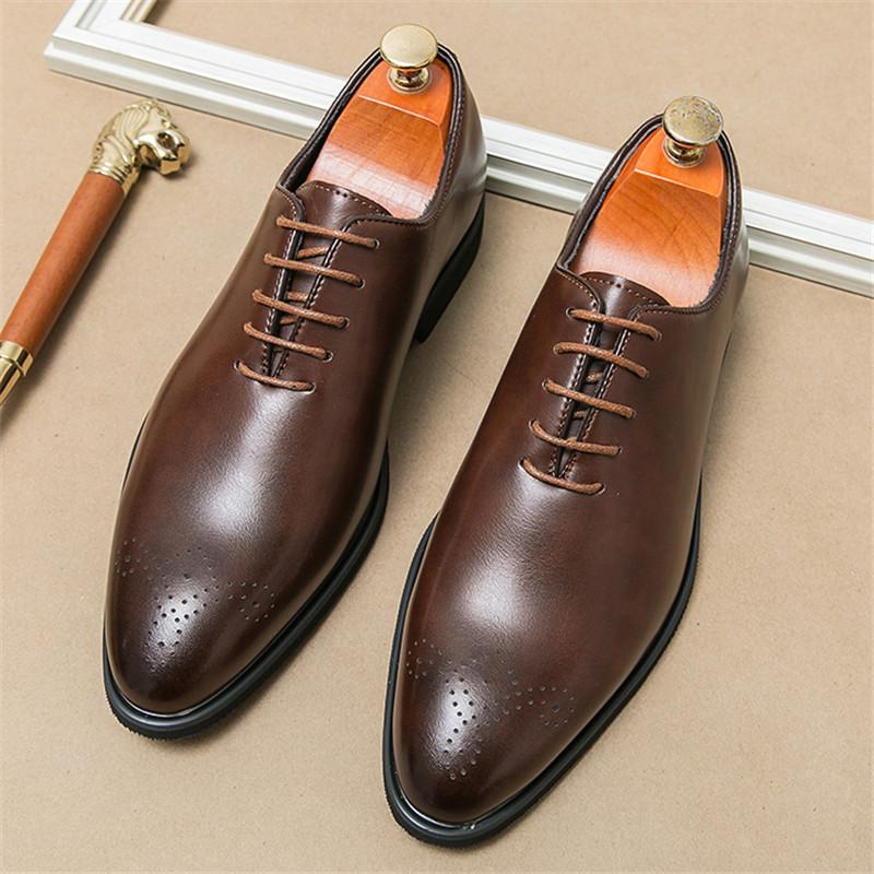 Модный дизайнер Новые черные коричневые мужские остроносые оксфорды-броги на шнуровке Мужская свадебная одежда Выпускной вечер Формальная свадебная обувь