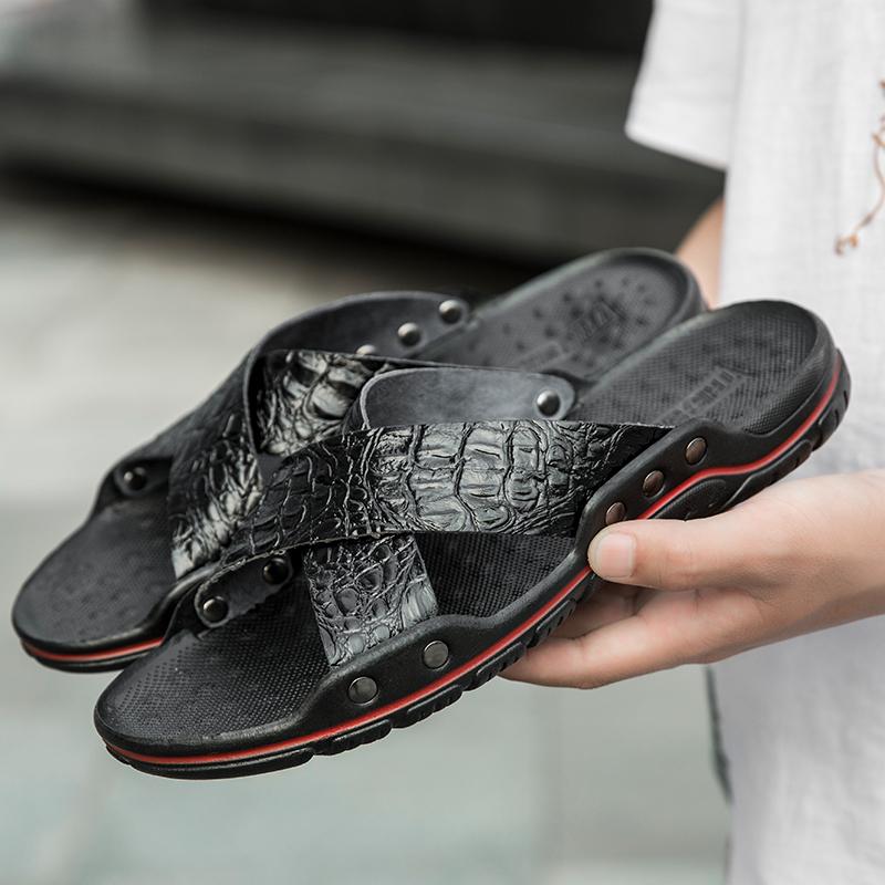 Модные кожаные простые тапочки для мужчин, летняя обувь для отелей и пляжа, высокое качество, большой размер 38-48, легкие мужские шлепанцы — купить товар онлайн с бесплатной доставкой по всему миру!