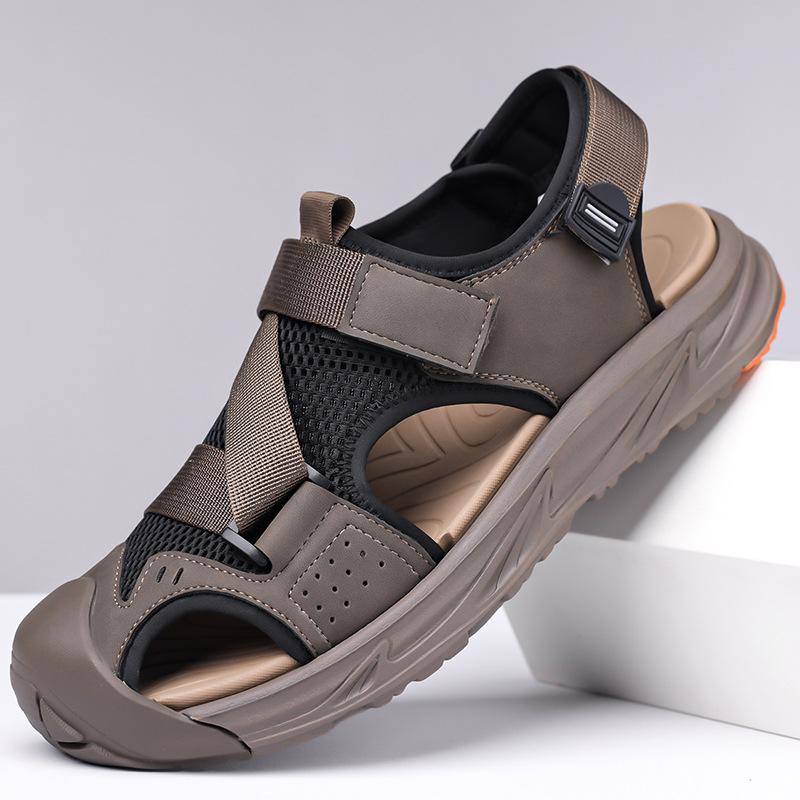 Мода 2025 Новые летние противоударные сандалии для ходьбы по воде для мужчин однотонные пляжные туфли мужские модные повседневные дышащие платформенные сандалии мужские